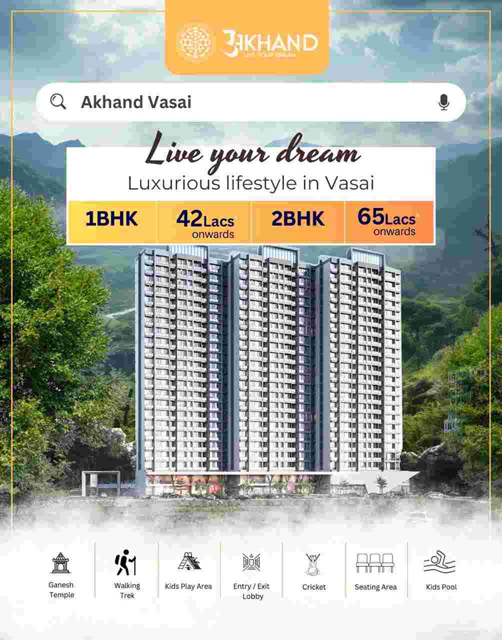 The project was launched in Oct, 2023 and possession date of Akhand is Dec, 2026. Akhand is located in Vasai East. The project is developed by Akhand techton lifespaces. There are 450 units for sale.